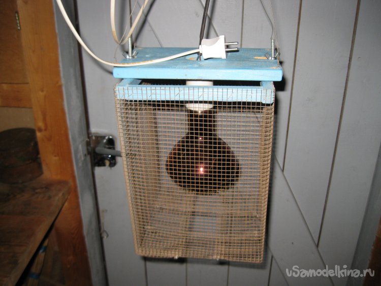 Однако основным недостатком инфракрасной лампы, является то, что во время работы она достаточно сильно нагревается. Это плохо в плане пожарной безопасности, поскольку при попадании на лампу птичьего пуха, перьев, клочков сена и т.п., вполне может произойти возгорание. Да и сама птица может обжигаться, случайно задевая за лампу. При этом вешать лампу в безопасном месте, например, под самым потолком нельзя, поскольку она излучает тепло вниз и для лучшего обогрева ее нужно размещать невысоко от пола.