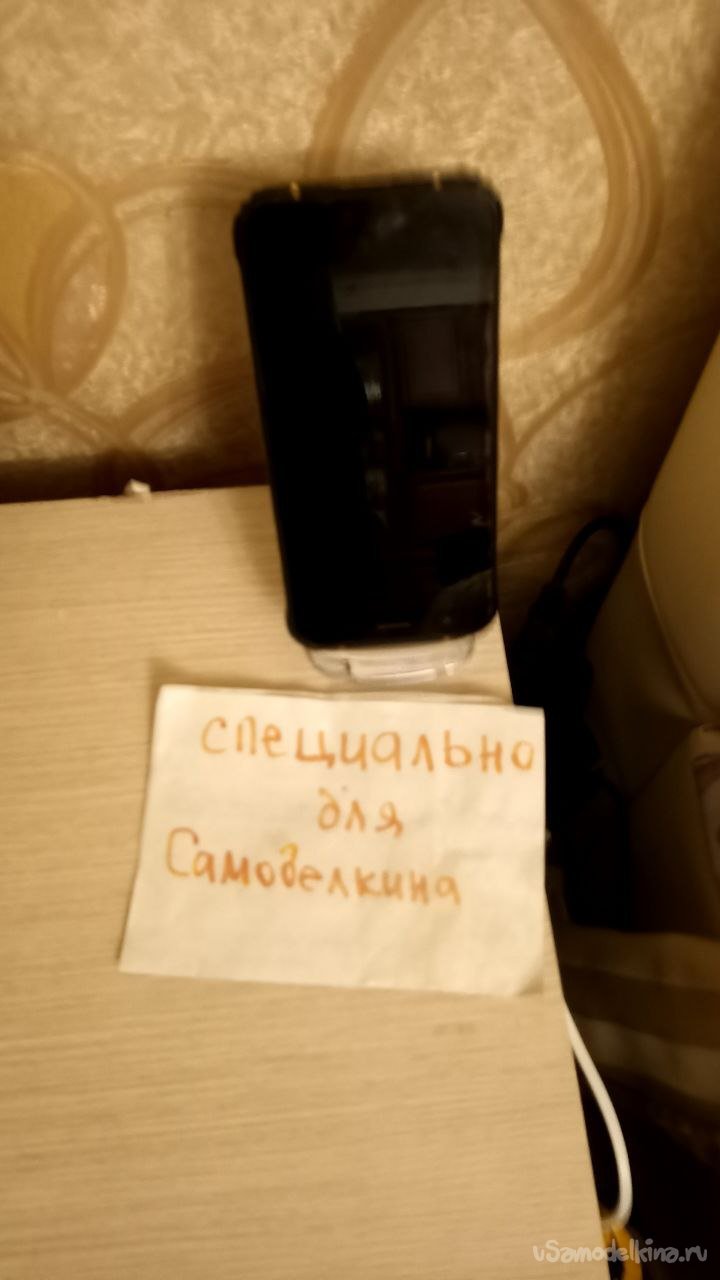 После поиска подходящей картонной коробки (мне подошла коробка от беспроводных наушников) ножом надо сделать раскрой, чтобы при заряжающемся смартфоне эта деталь плотно сидела на тумбочке и не пропускала свет от зарядки. Также пришлось сделать подгонку, чтобы в темноте на ощупь чётко вставлять/снимать мой холдер.
