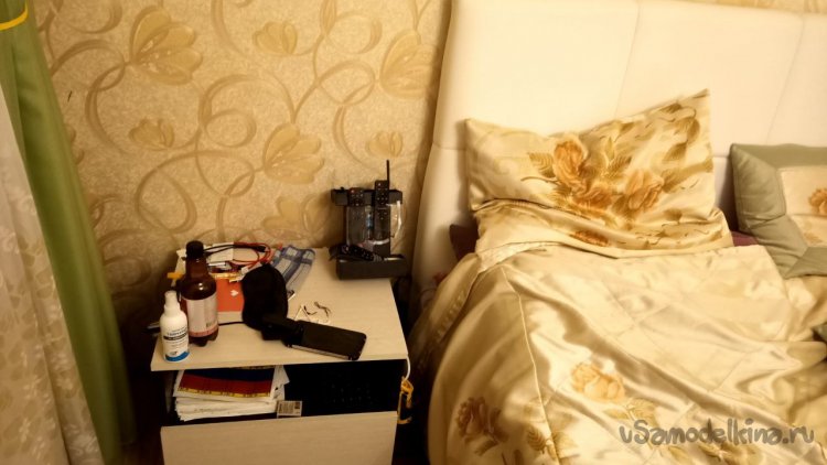 В процесс производства вмешалась и моя жена, дескать, всё равно ночью в тишине пульт или капли в нос на тумбочку кладёшь, и меня будишь, а ей вставать рано. Пришлось изобрести прорезиненный коврик на всю тумбочку. Вроде жене понравилось.