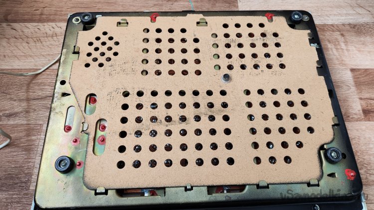 Нижняя часть внезапно удивляет листом ДВП с вентиляционными отверстиями.