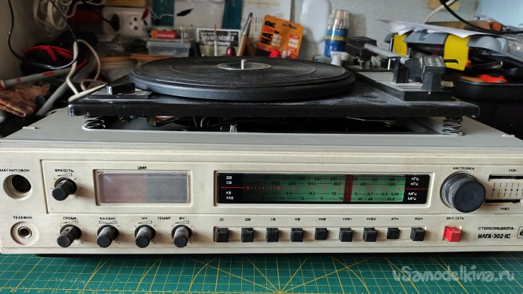 Все прекрасно работает. Во второй части займемся восстановлением и модернизацией ЭПУ, подключением двигателя 127В напрямую к сети 220В, изучением конструкции и ремонтом головки звукоснимателя.