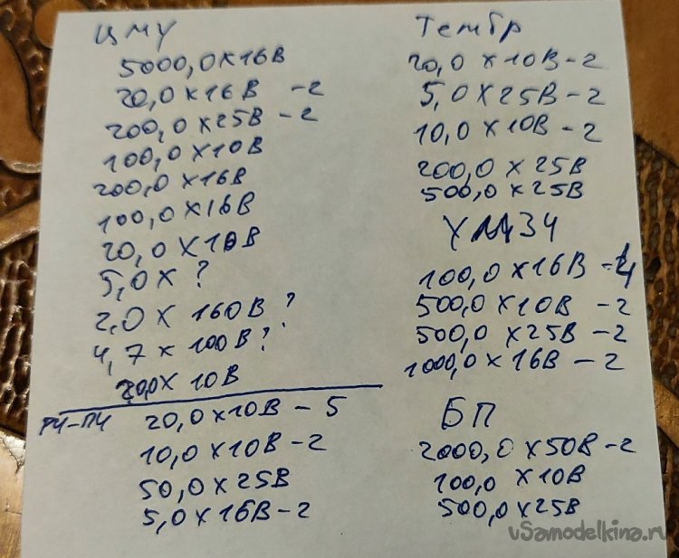 Пробежался по платам, составил список электролитических конденсаторов. Список внушительный. Даже засомневался, оно мне надо? Но в ожидании прослушивания грампластинок сам себе ответил, надо!