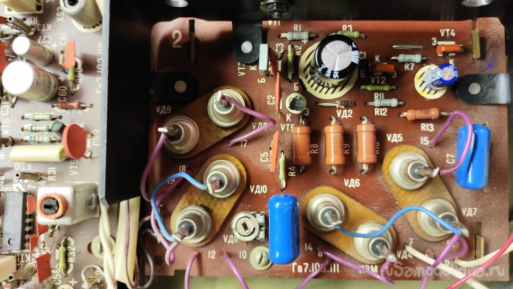Этакий пережиток прошлых лет, который в те годы уже повсеместно переставал употребляться, при том, что радиола была конца восьмидесятых, судя по маркировке на конденсаторах.