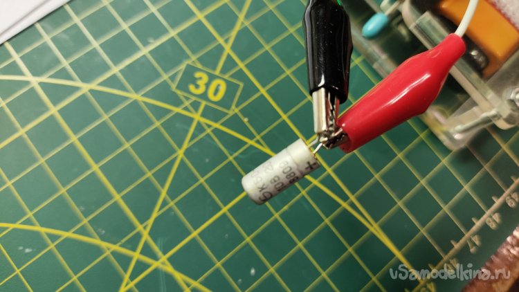 А это емкость одного из первых отечественых конденсаторов в черной термоусадке К50-35. 85 мкФ.