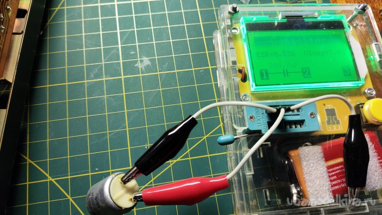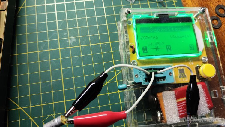 Проверяю. Емкость даже больше нормы, ESR 1,1 Ом. Поискал, как закрепить новый конденсатор на плате. Везде неудобно. Решил его не менять, чтобы не мудрить с креплением конденсатора.