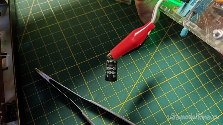 Остался только большой электролит 5000мкФ. Отпаял один провод с платы.