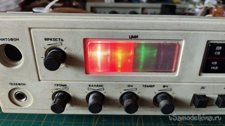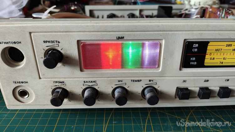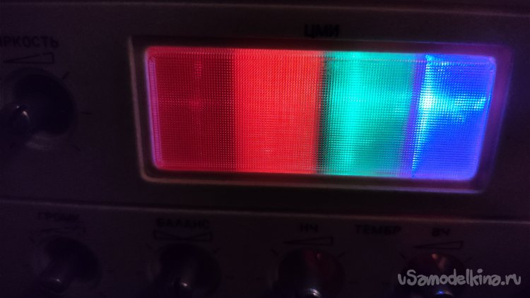 У радиолы есть уникальная встроенная цветомузыкальная индикация, на четыре цвета. Когда мне отдали радиолу, индикация работала, как и приемник УКВ. Кстати, современная молодежь прекрасно знает, что такое FM, но не знает, что такое УКВ. Убедился на племяннике студенте.