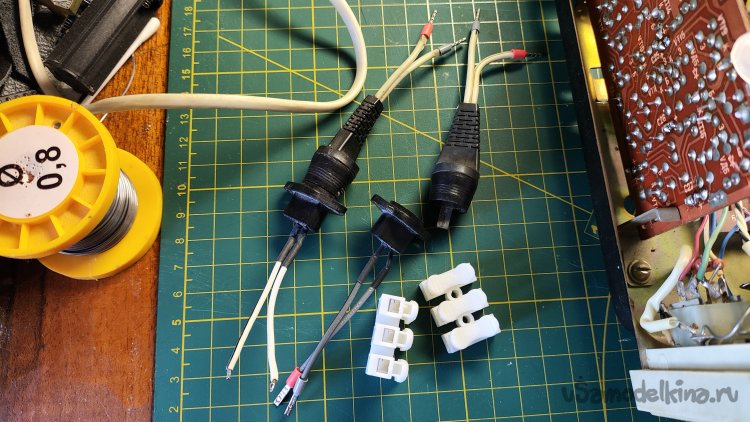 Проверим, что со звуком. Для подключения колонок к выходам радиолы у меня есть в запасе вот такие переходники и соединители.