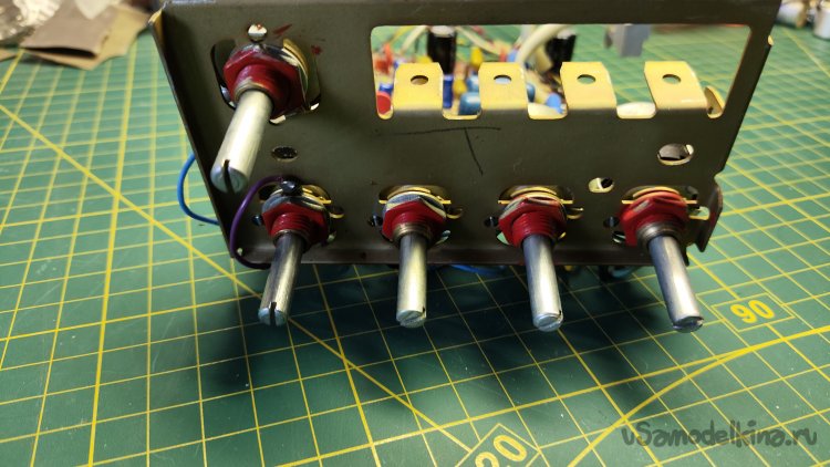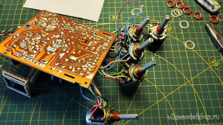 Переменные резисторы нуждаются в профилактике, причем все пять. Печалька, они все сдвоенные и разбирать, чистить-смазывать тот еще кусок работы. Но сделать это надо.