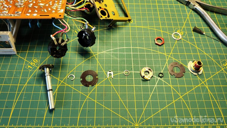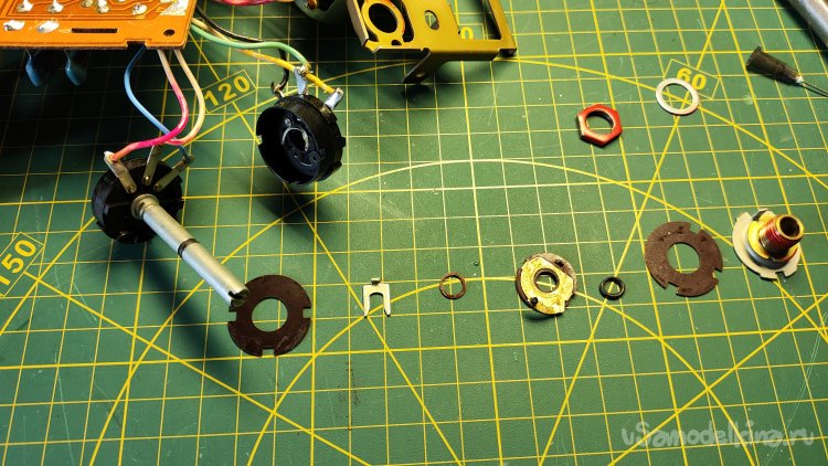 Чищу, смазываю тонким слоем вазелина, собираю обратно. Процесс требует аккуратности и усидчивости. Каждый резистор после сборки проверяю мультиметром. Один пришлось снова разбирать, устранять плохой контакт. Поэтому остальные проверял перед сборкой. Еще один пришлось разбирать, забыл установить резиновое колечко.