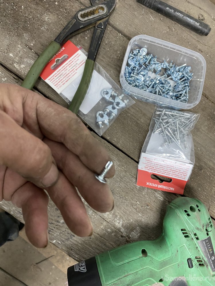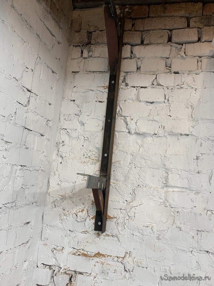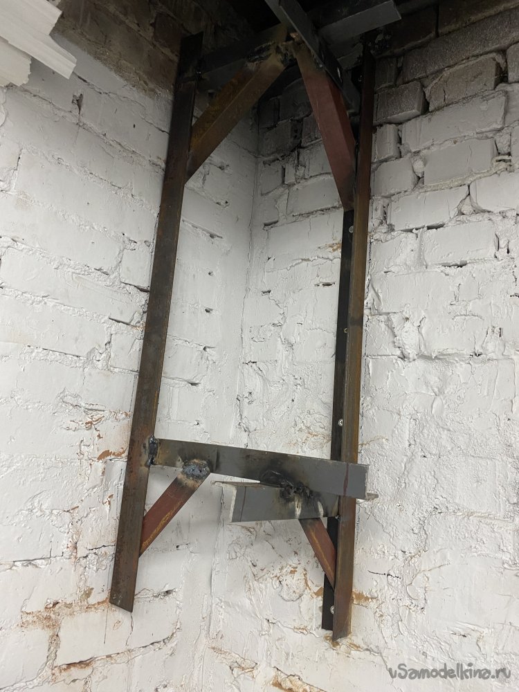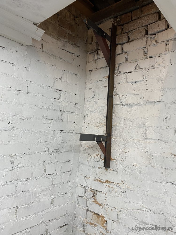 Потом, при помощи мощных дюбель=гвоздей, закрепил их к стенам в углу и сварил между собой: