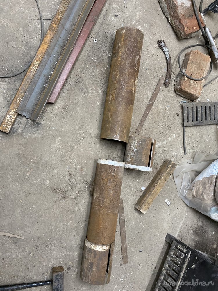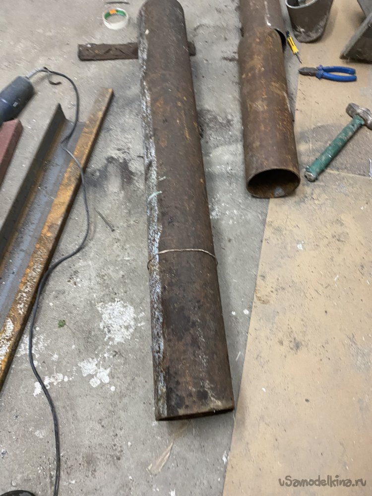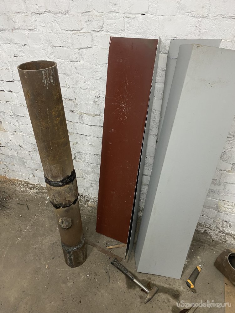 Так как я люблю по возможности, делать полезные вещи из "хлама", то дымоход я решил изготовить из труб, подобранных в пункте приёма металлолома и выменянных на другой металлолом по весу: