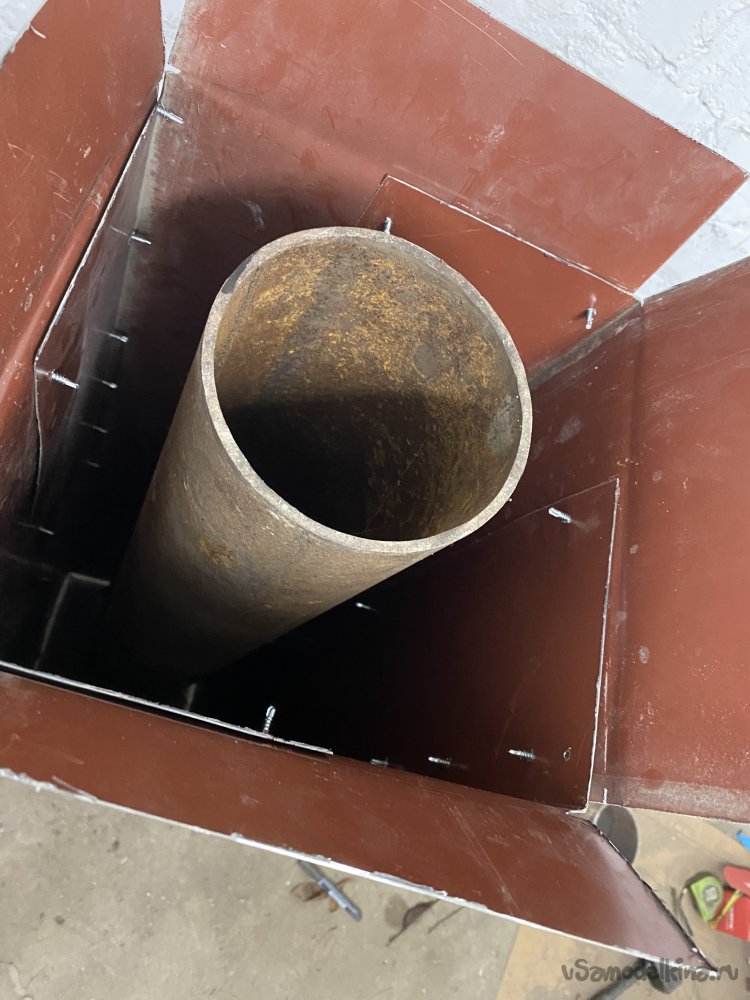 Итак, внутренний дымоход готов. труба сверху доходит до самой кровли. Дальше необходимо сделать наружный дымоход.