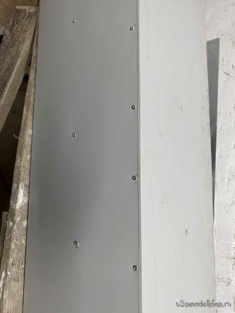 Верхние края загнул и тоже соединил сперва шурупами, а потом заклёпками:
