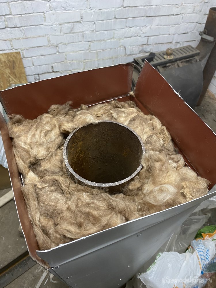 Термоизоляция необходима не только для предотвращения пиролиза и (не дай Бог) возгорания деревянных частей перекрытия, но и для обеспечения нормальной тяги! Ведь, дымоход металлической печи тоже будет металлическим. И, если его не утеплить, зимой будут проблемы - устремившиеся вверх горячие газы будут остывать, проходя по намёрзшей металлической трубе, и падать вниз! То есть, тяги не будет!