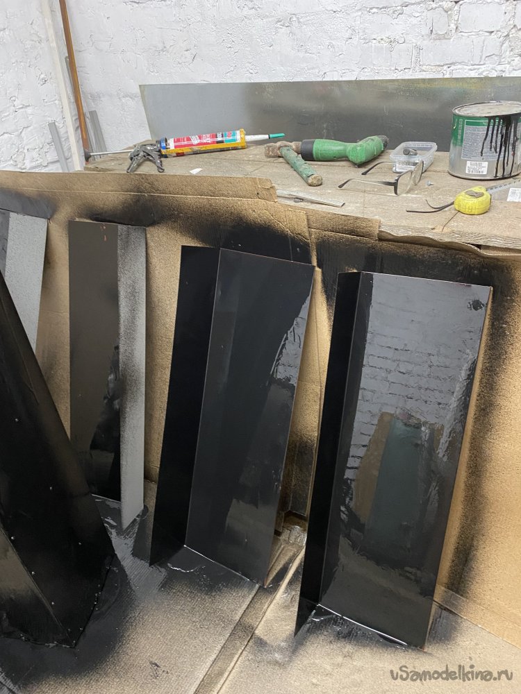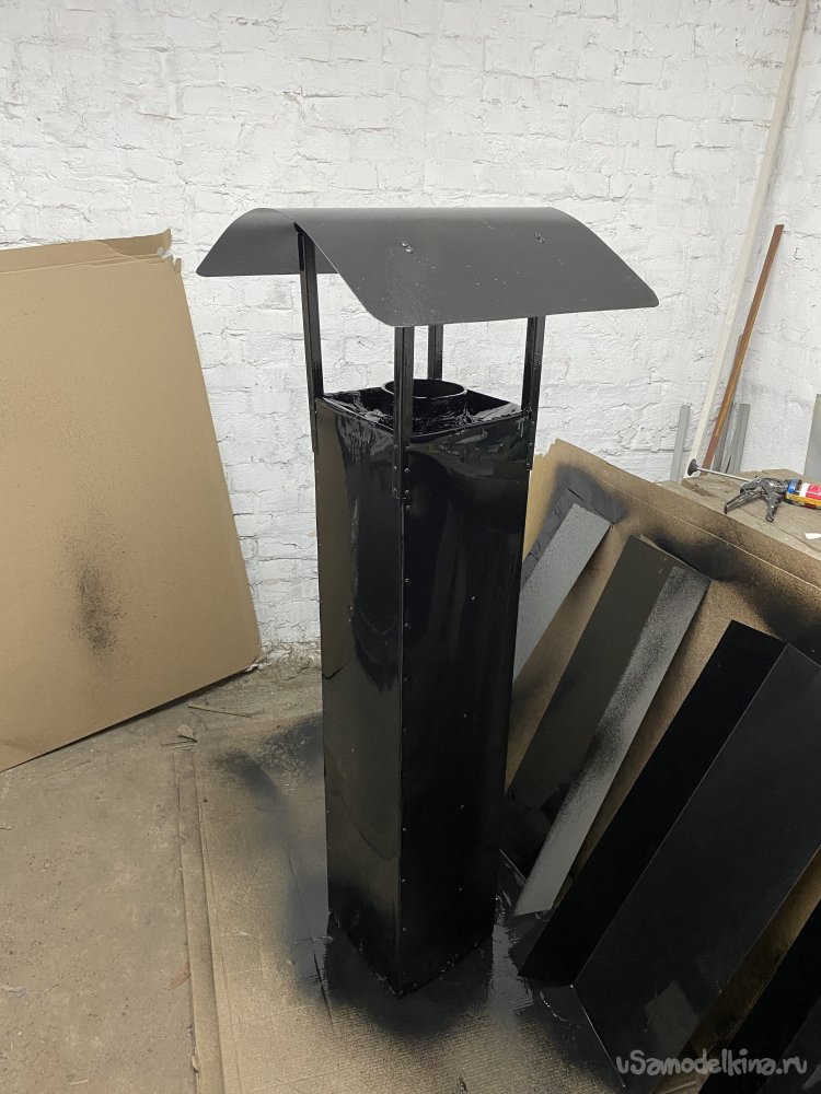 Всю конструкцию покрасил в чёрный цвет обычной эмалью ПФ-115. Нет смысла использовать здесь термоэмаль: