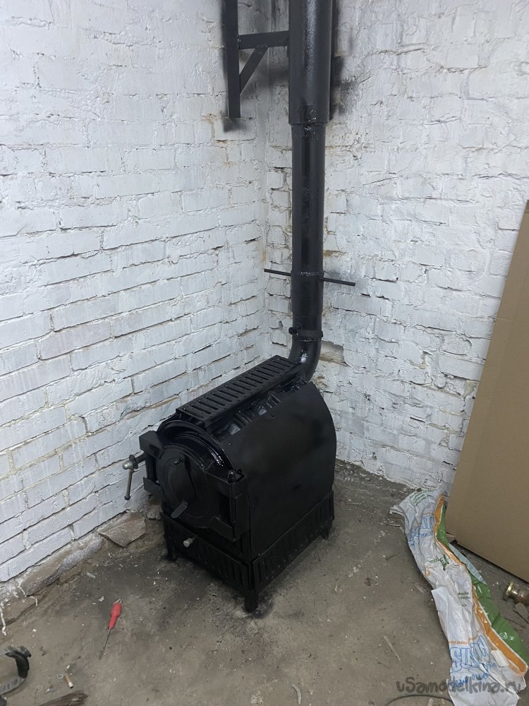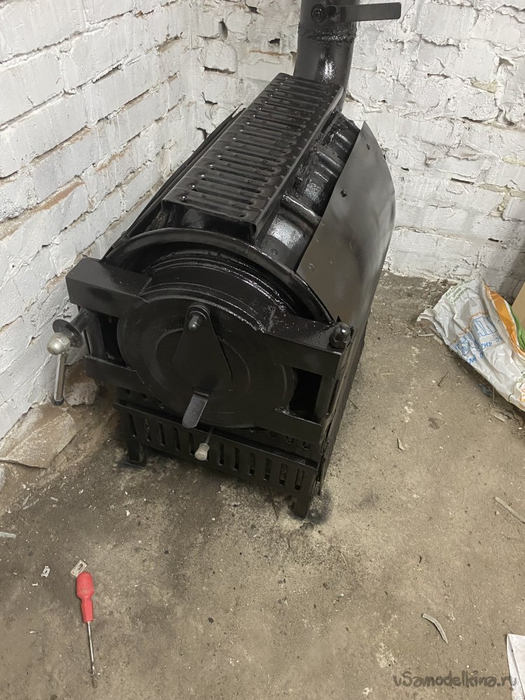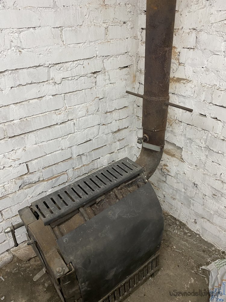 Итак, первым делом печка была принесена в сарай. и было определено место её установки: