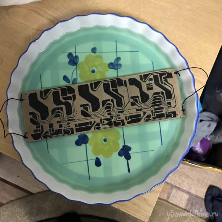 ЛУТ + травление в перекиси, отмывка, лужение, получение люлей от супруги за тарелку.