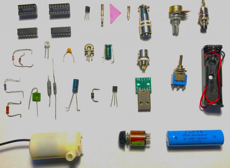 Конденсаторы С2, С3.2, C8, С11 оксидные типа К50-35 или зарубежного производства. Конденсатор С4 – оксидный с малым током утечки, например, фирмы «Maron» или «Jamicon». Остальные – керамические типа КМ или малогабаритные зарубежного производства. Дроссели Др1, Др2 - ДМ0,4 индуктивностью от 16 до 40 мкГн. Др3 может быть типа ДМ0,4 с индуктивностью от 40 до 100 мкГн. Возможно и ручное изготовление дросселя Др3 с индуктивностью до 13 мГн (8 Ом). Диоды VD1 … VD3, VD5 – КД522Б - могут быть заменены КД503, КД510, КД520 … КД522 с любой буквой. Диод VD4 – КД510А - можно заменить 1N4001… 1N4007. Транзистор VT1 можно заменить КП505А, КП505Г, BSS295 (и теоретически любыми из серии КП501 … КП505 кроме КП503). Интегральный стабилизатор DA1 - 78L33. Микросхема DD1 HCF4060BE имеет аналоги CD4060BE, CD4060BF. ИМС DD2 SN74AC74N имеет российские аналоги SN74HC74NSR, MC74AC74NG (не проверены). Зелёный мигающий светодиод HL1 - ARL2-5213PGC-B. Жёлтый светодиод HL2 - ARL-5213UYC. Красный светодиод HL доп. - ARL2-5113URC в крайнем случае можно заменить красным АЛ307К, или АЛ307Б. Тумблер SA доп. – на три положения типа MTS103, SMTS103 (MTS203). В позиции SA1 может быть малогабаритный движковый переключатель SS12D00G3 или проволочная перемычка. Галетный переключатель SA2 типа МПН-1 (10П1Н). Или (в случае увеличения корпуса - типа ПМ 11П2Н или 5П2Н). Кнопка SB1 – «кнопка без фиксации» - миниатюрная с двумя НР контактами типа PBS-110 (с крепёжной гайкой d=7 мм). Тип определён умной камерой бота Алисы по фотографии. Похоже, можно верить. Цена от 39 рублей в интернет магазине Kulibin.su. Однако если покупать на Алиэкспресс сразу 10 штук, то получится намного дешевле - по 13 рублей за штуку. Мотор М1 - насос погружной DC3-5V. В интернет-магазине MCU имеет артикул 00304 и цену 126 рубля.