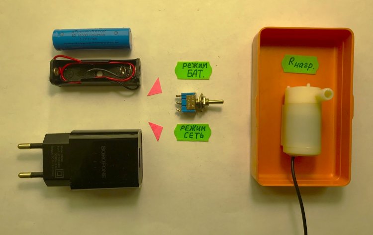 Радиоэлектронные компоненты, приобретённые в интернет магазине MCU-store. Довольно дорого, но доставка курьером до порога – не более 10 дней. Справа на рисунке 10 – погружной насос, обозначенный как R нагрузки.