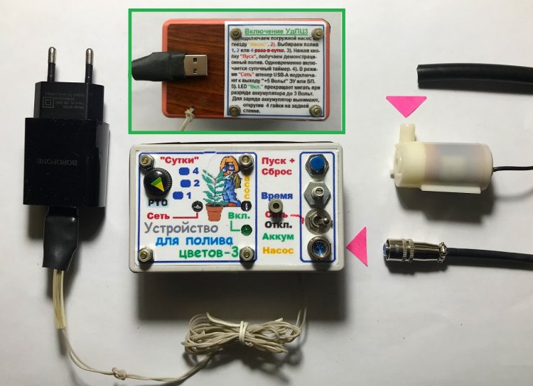 УДПЦ3 составлен из 2 блоков: покупного ЗУ-БП и самостоятельно изготовленного собственно «поливатора».