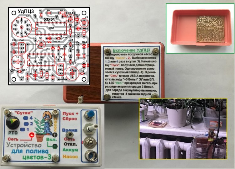 Устройство для полива цветов - 3 (далее просто УдПЦ3) – улучшенный (упрощённый и миниатюризированный) вариант авторских «поливаторов» для домашних цветов.
