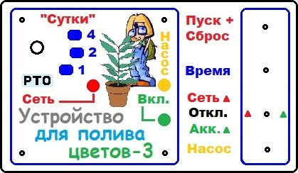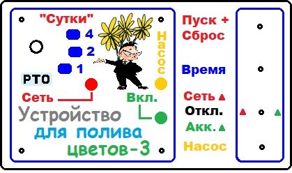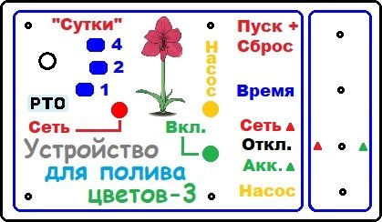 4). Ступенчатый выбор частоты полива цветов. Установка длительности сеанса полива потенциометром.
