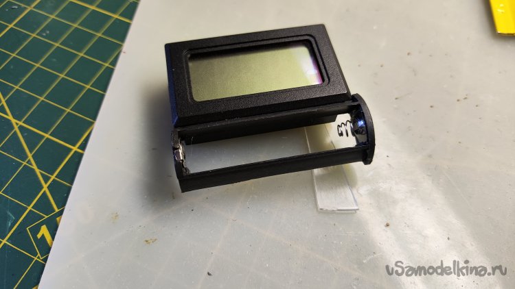 Откусил кусачками лишнее. Примерил место установки сверху и снизу. Сверху проще, но падающая пыль будет падать внутрь, поэтому расположу блок снизу термометра.