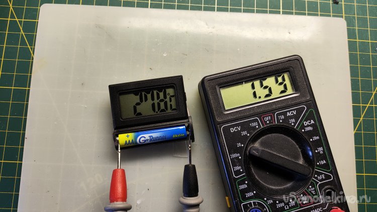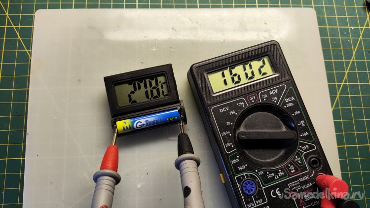 Кстати, недавно в статье про синтезатор я писал о напряжении новых батареек, что оно может быть до 1,6 Вольта. Может не все в это верят? Для вас измеряю напряжение новой батарейки.