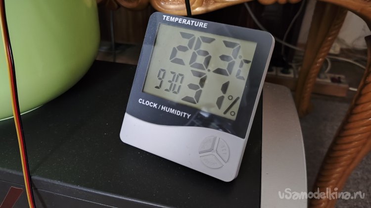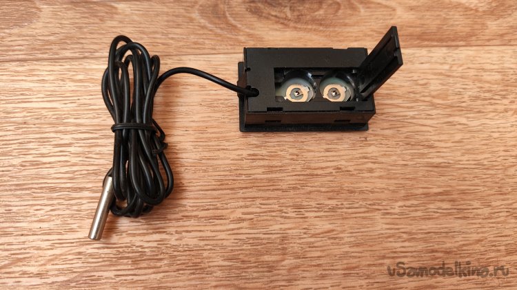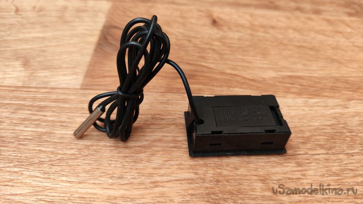 Относительно длинный провод датчика весьма удобен, когда надо измерить температуру на удалении: улица, холодильник, стакан воды, температура бака с горячей водой на даче. О дачных самоделках я рассказывал ранее: ссылка.
