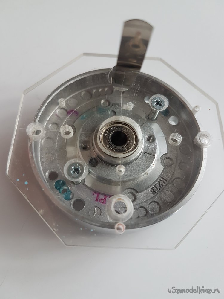 По центру платы сделал отверстие для подшипника узла, иначе он не давал плотного прилегания монтажки к верхней части блока видеоголовок. Затем на эту монтажку закрепил уровень и собранный узел аккумулятор +указка. Для него изготовления использовал корпус от магнитофонных компакт-кассет.