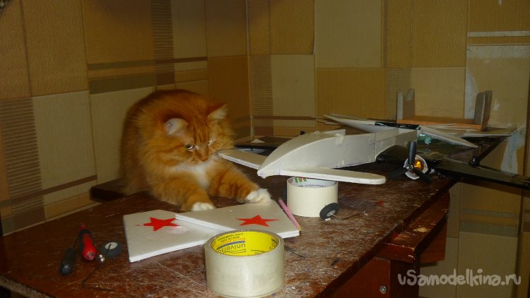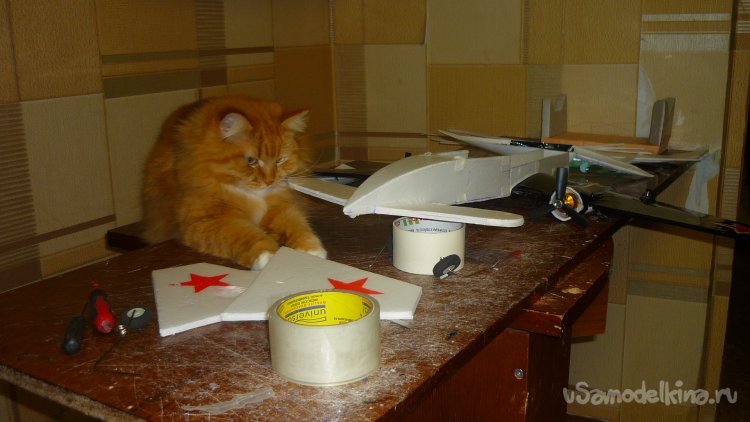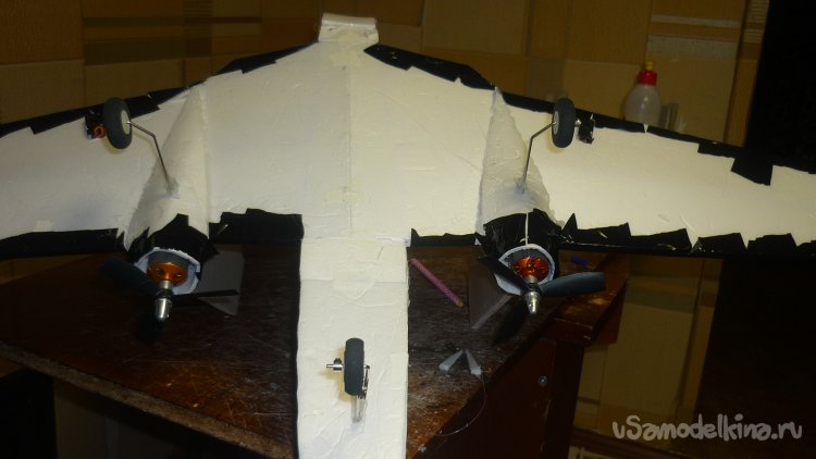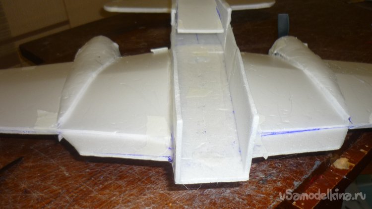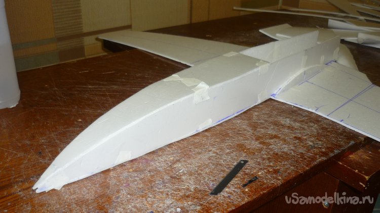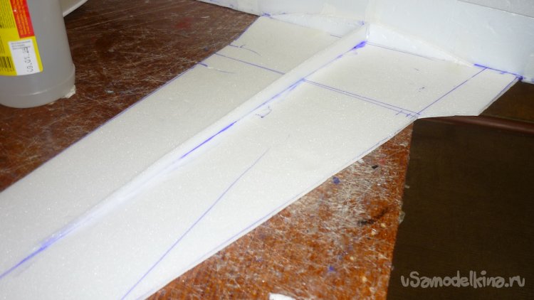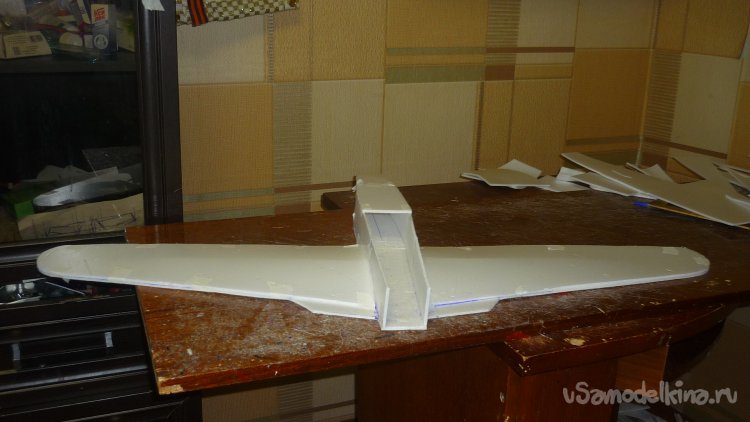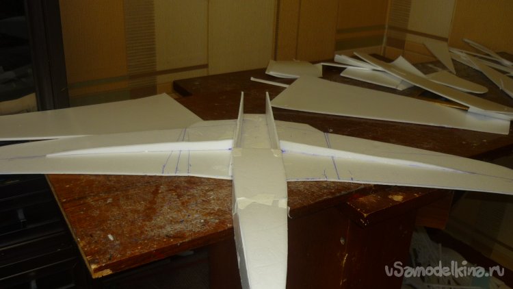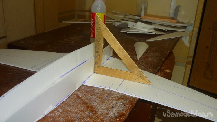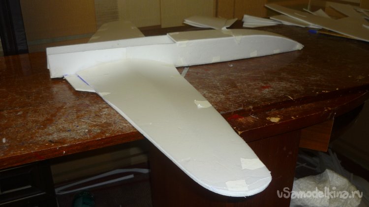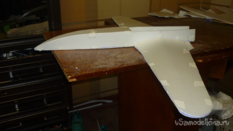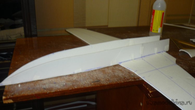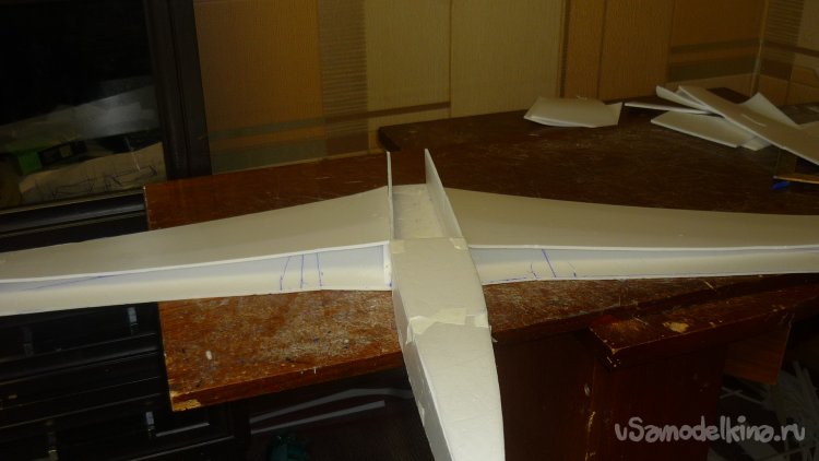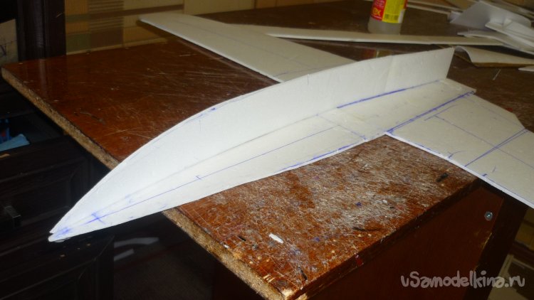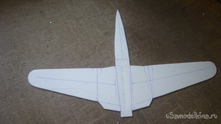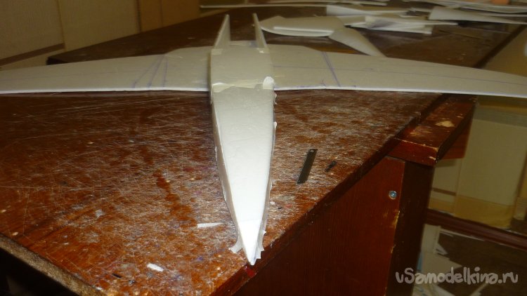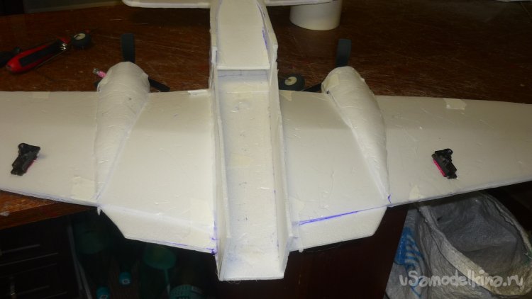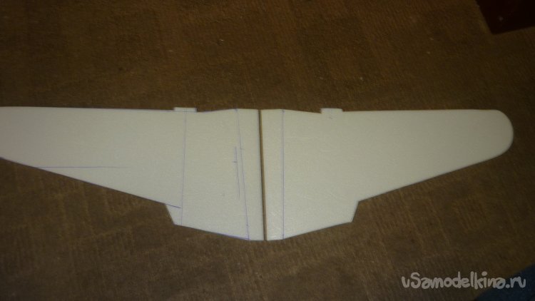 Разметил места установки сервомашинок управления элевонами.