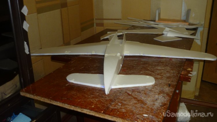 Выкроил заготовки боковых стенок фюзеляжа. Они склеиваются из двух частей.
