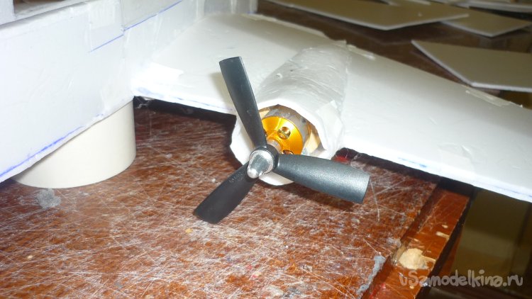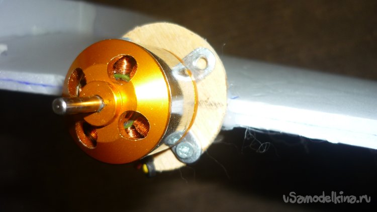 Для крепления мотора, вклеил кружочки из 3 мм. фанеры, установил моторы.