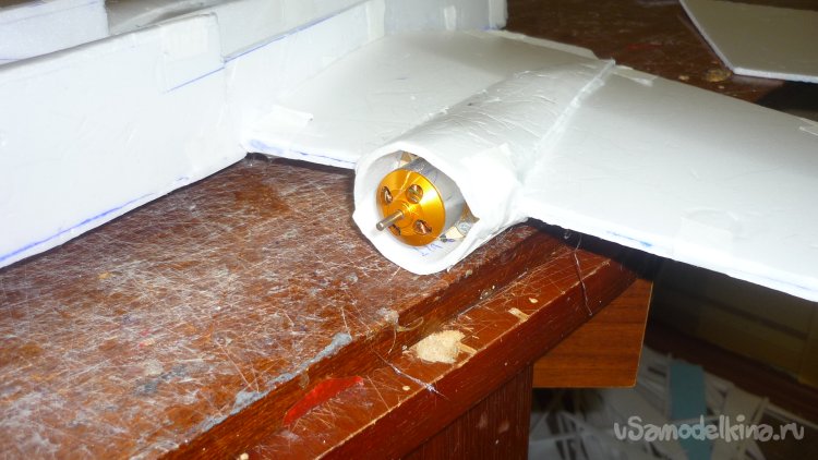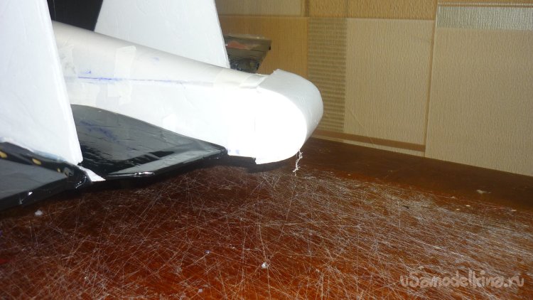 Вырезал заготовки и смонтировал что-то подобное турели в хвостовой части фюзеляжа.