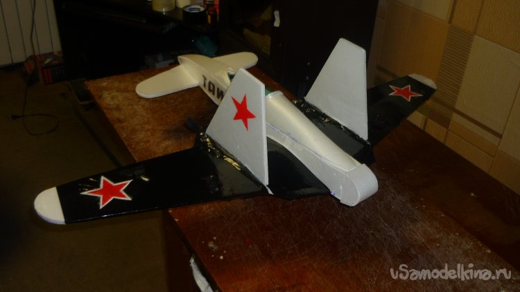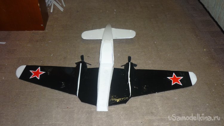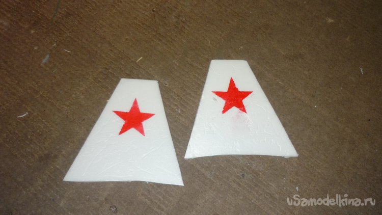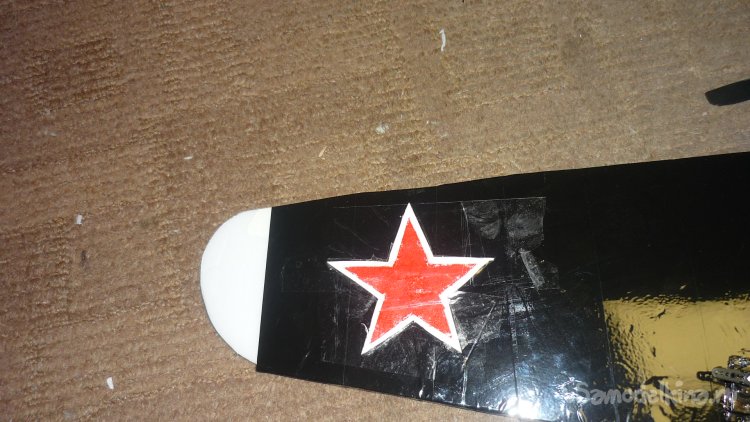 На концы крыльев нанёс красные звёзды.