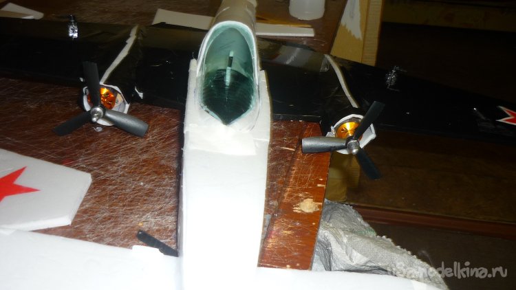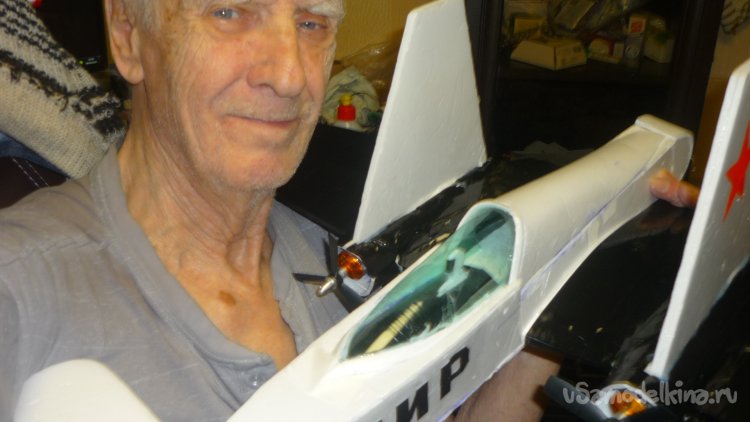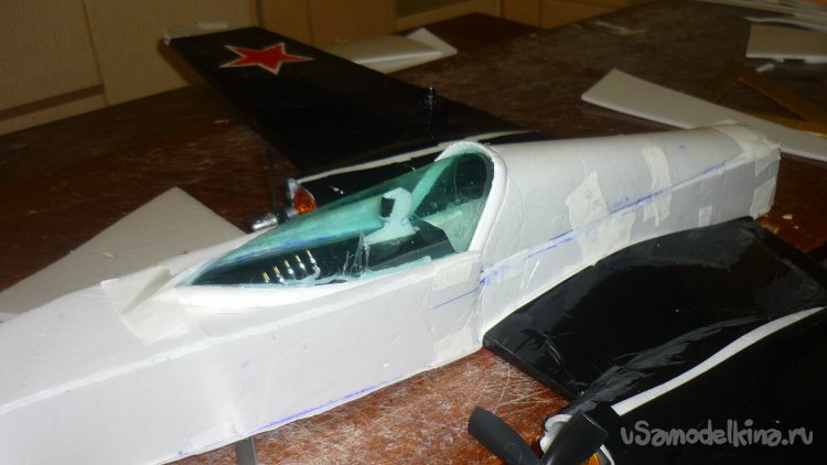 Из пластиковой бутылки вырезал остекление кабины, вырезал фигурку пилота, всё смонтировал.
