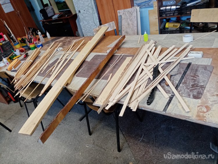 Из нескольких образков реек сделал заготовки усиления в носовую часть.