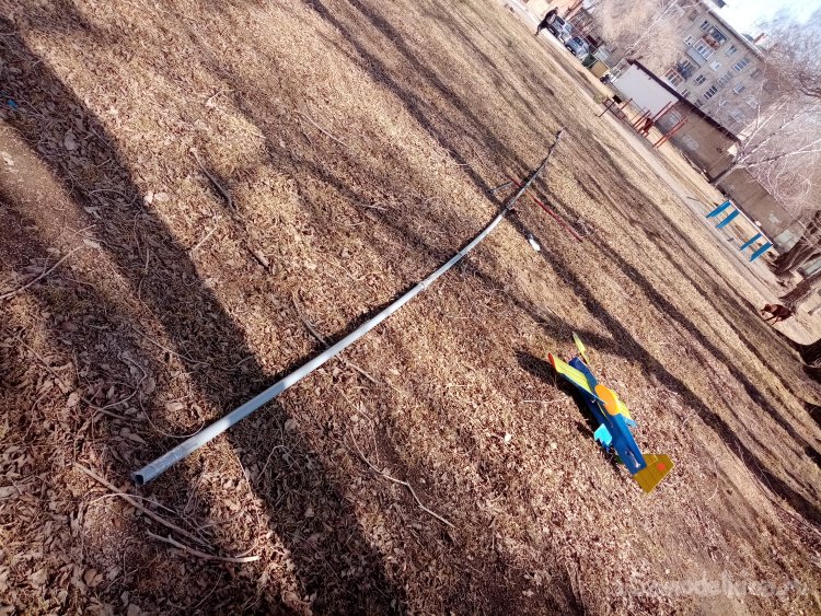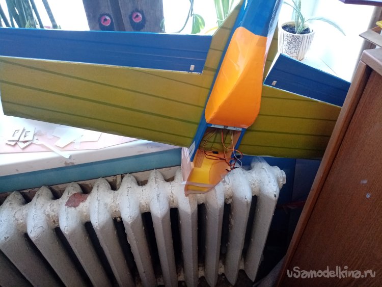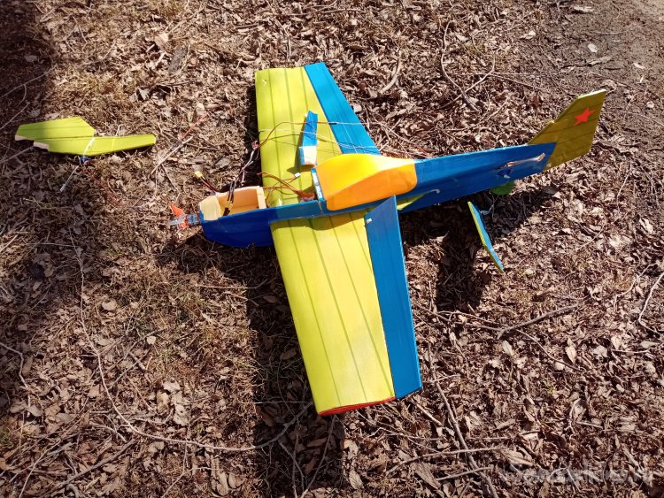 Самолетик летает просто замечательно, это 3Д вариант. Латал героически почти два месяца, пока снег не сошел. И залетался. На самый верх большущего дерева. Операция спасения длилась два дня.