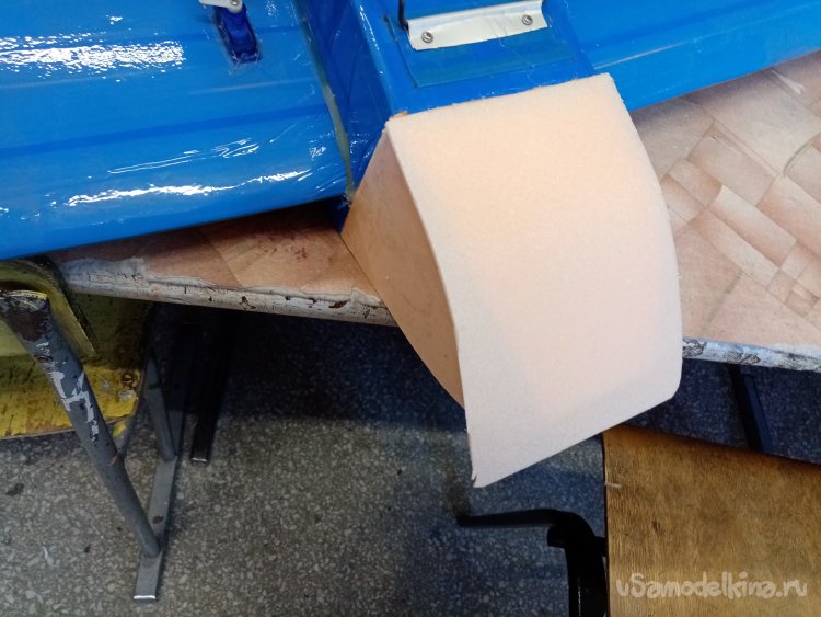 Подрезаю новую носовую часть и шлифую. Затем немного шкуринга, при помощи самодельных утюжков со шкуркой.