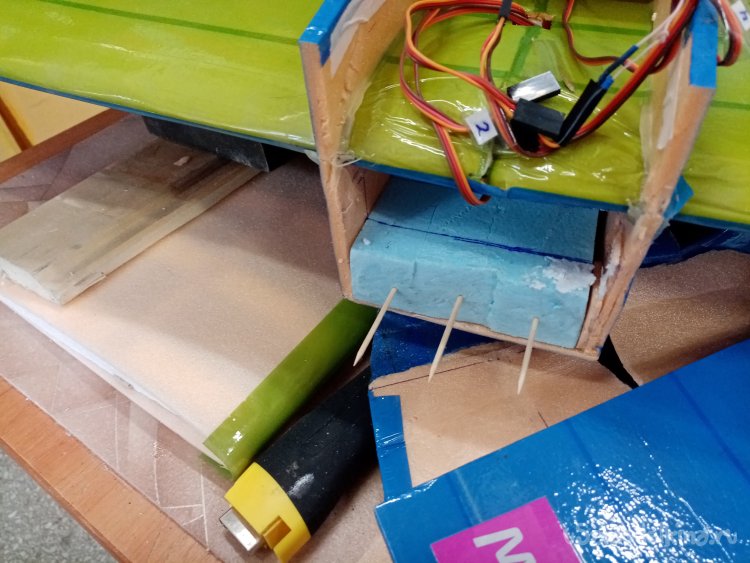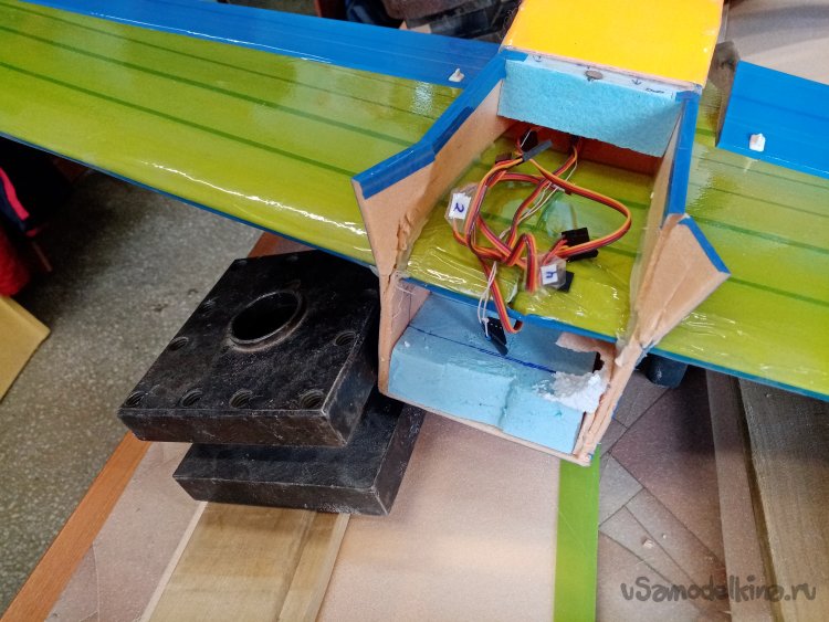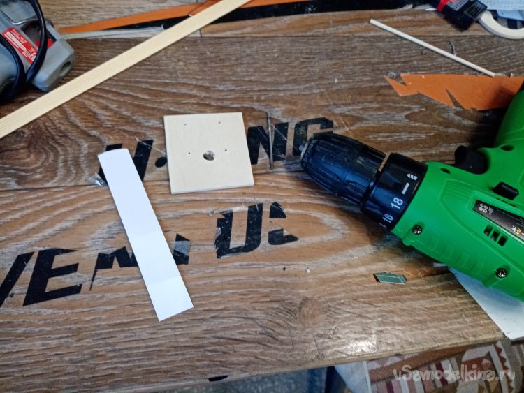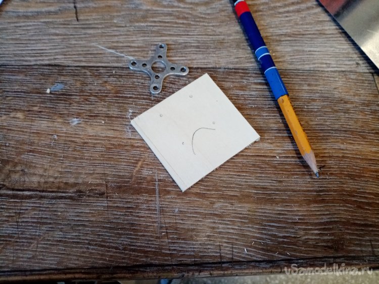 Размечаю сразу отверстия под двигатель. Эту операцию нужно проделать заранее. На готовом самолете это делать крайне неудобно.