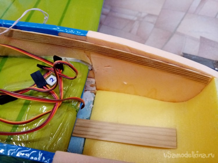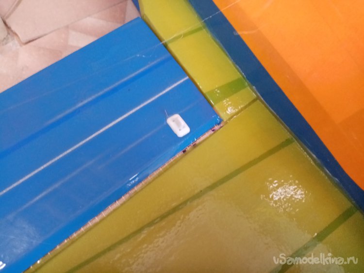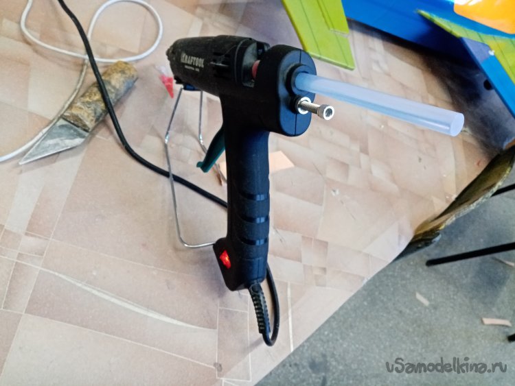 Данное усиление устанавливаю на термопистолет. Все тонкие рейки усиления приклеил по местам. Взял тонкие, примерно в 1.5мм. Поскольку нужно изогнуть по размеру бортов.