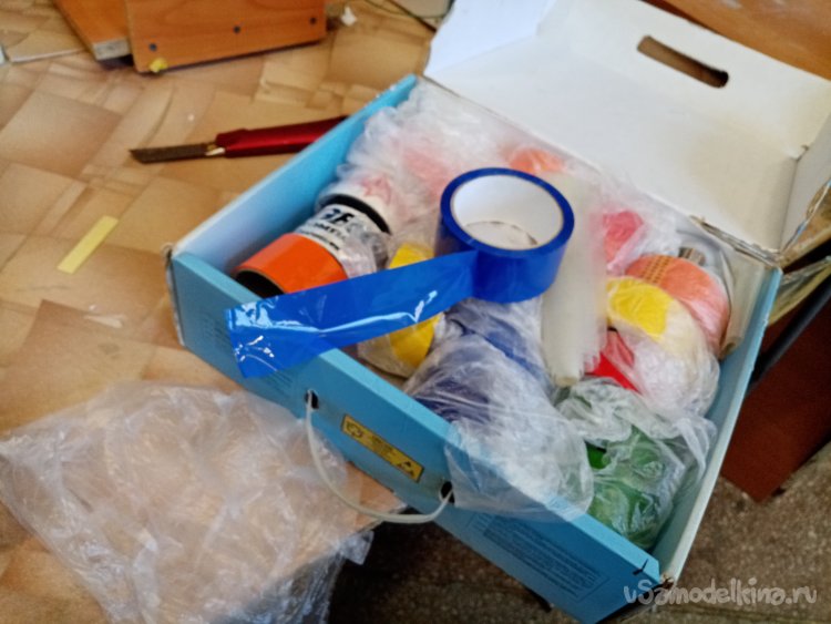 После подготовительных процедур собираю все детали в кучу на клее для потолочной плитки. И фиксирую полосками малярного скотча.