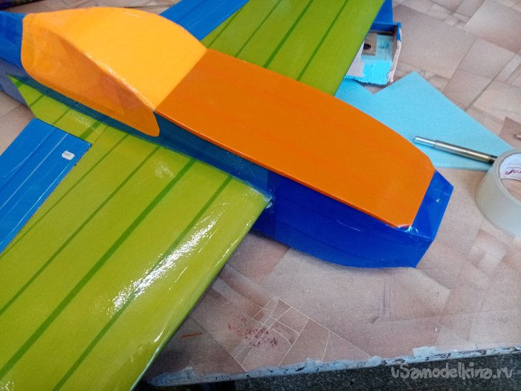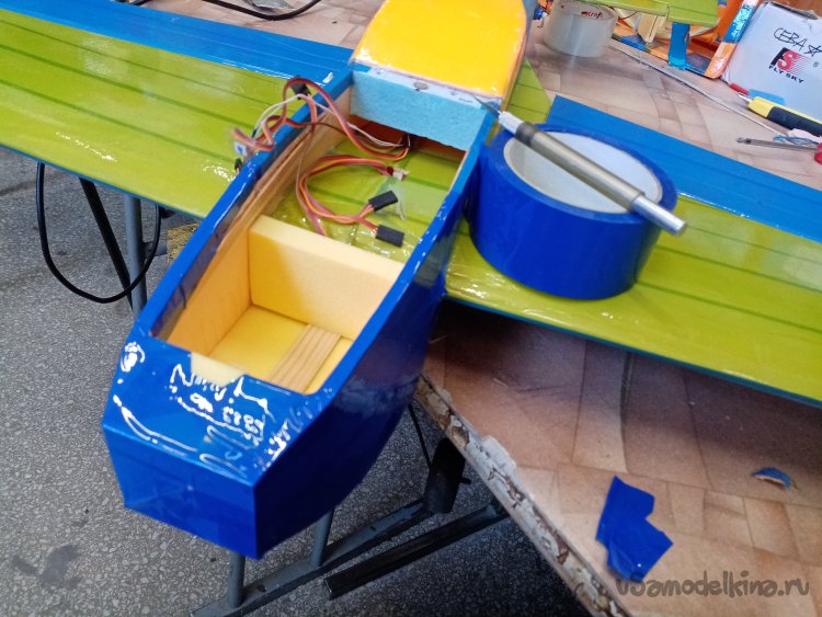 Оклеил носовую часть синей пленкой, немного подходящей по тону в основному.