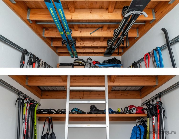 ✔ Потолочные платформы — для сезонных вещей (лыжи, санки).