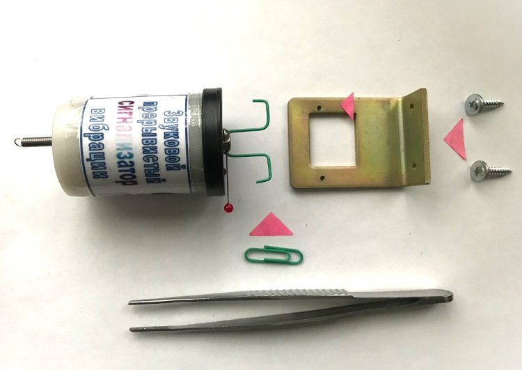 А теперь о положительных моментах в звуковом прерывистом сигнализаторе вибрации. Я его далее буду называть просто «Сигнализатор». Увидев на фотографии красную булавку, мне сразу же захотелось изготовить сигнализатор. Здорово придумано, но это скорее для привлечения внимания и для удобного осмотра качелей.