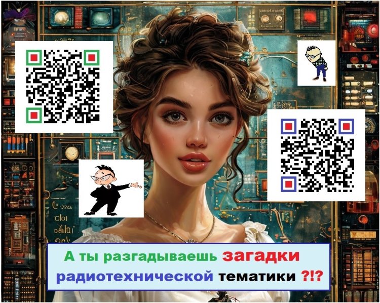 Рисунок 20 по традиции также отдан боту Алисе для прославления загадок радиотехнической и радиоэлектронной тематики. Информацию о полезных книгах ЗРТ (Загадки радиотехнической тематики) и ЗпЭ (Загадки по электронике) можно получить по двум QR-кодам, размещённым слева и справа (соответственно).