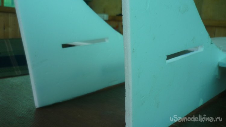 В хвостовых балках предварительно сделал прорези для монтажа стабилизатора с рулём высоты.