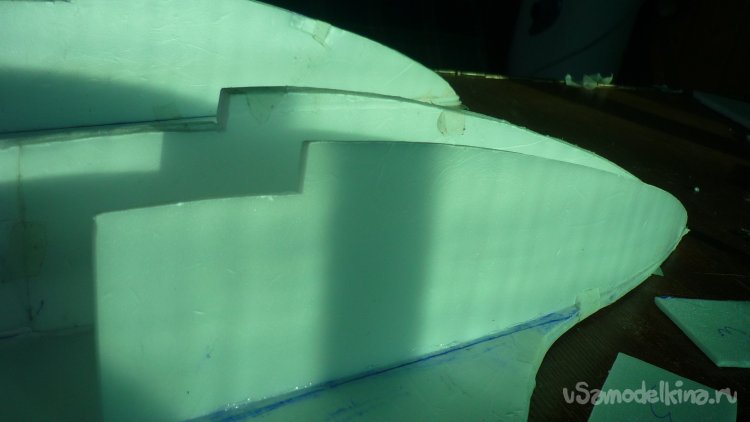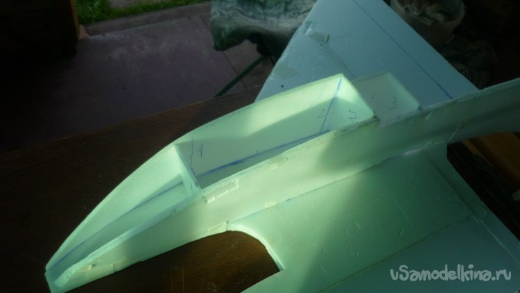 Во такие поплавки получаются. Внутри поплавков, для прочности, вклеиваются вертикальные перегородки.