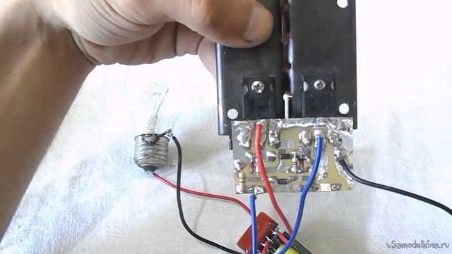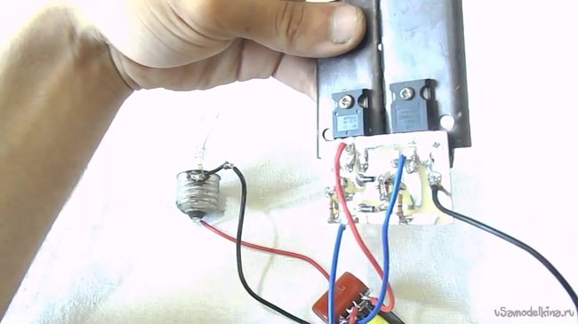 В нашем случае подключена лампа накаливания в 11 ват. Нам ее нужно засветить полным накалом.